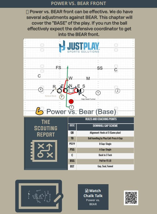 💪 Power is "GOD's" Play and is meant to be PHYSICAL! There is a frontside DOUBLE TEAM, KICKOUT, and a PULLER from backside to frontside for the LB.