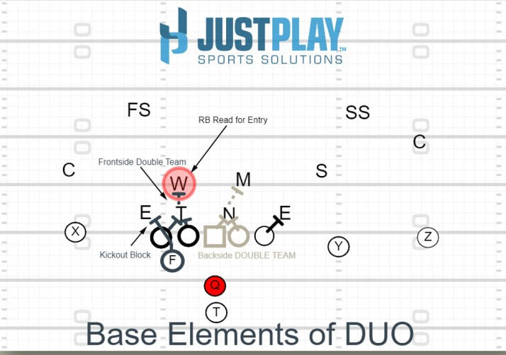 💪 DUO Is and excellent compliment/partner to POWER. It is basically Power without the pullers. It is a "MUSCLE" play that is meant to have physical double teams on the line of scrimmage to the 2nd level.