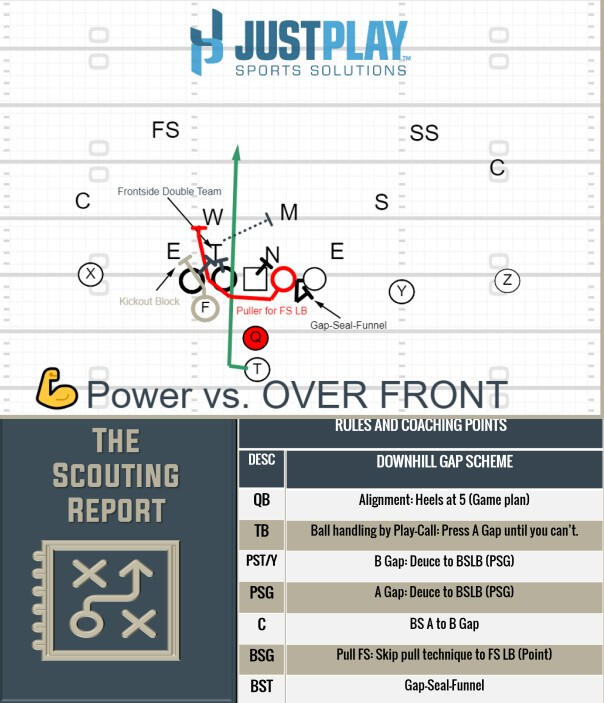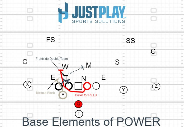 💪 Power is "GOD's" Play and is meant to be PHYSICAL! There is a frontside DOUBLE TEAM, KICKOUT, and a PULLER from backside to frontside for the LB.